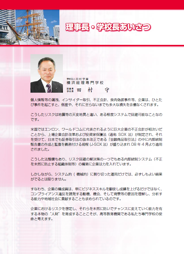 横浜経理専門学校は、学歴という肩書きでは、生き残れない時代を生き抜くことが出来る人材を育成すべく、個人そのものの価値を高める教育を実践しています。学歴神話が崩壊する時代の最大の武器は、その人自体の価値を高めることです。すなわち、社会人としての個人の商品価値を高めるために、クオリティの高い人材、プレミアのある人材を育成することを最大の目標としているのです。