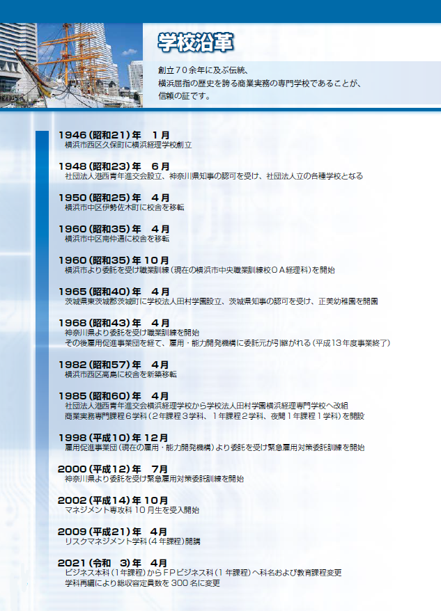 約80年にわたり商業実務分野で専門人材を輩出してきた横浜経理専門学校が