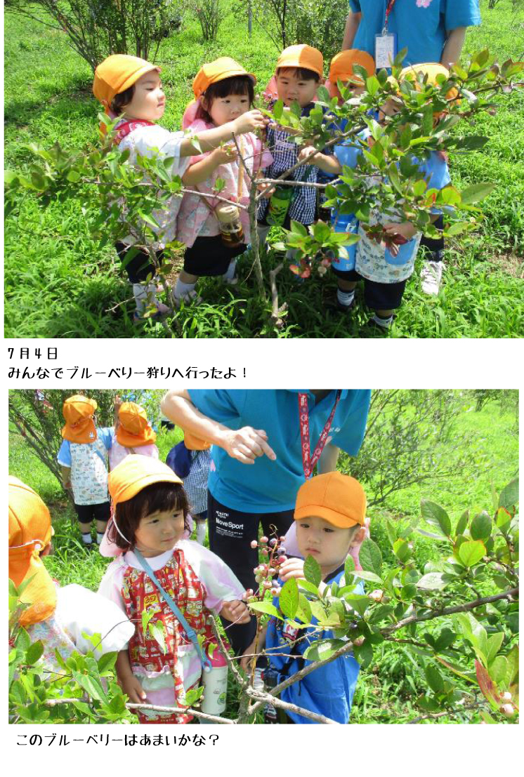 7月4日 みんなでブルーベリー狩りにいきました ! これはあまいかな ?!